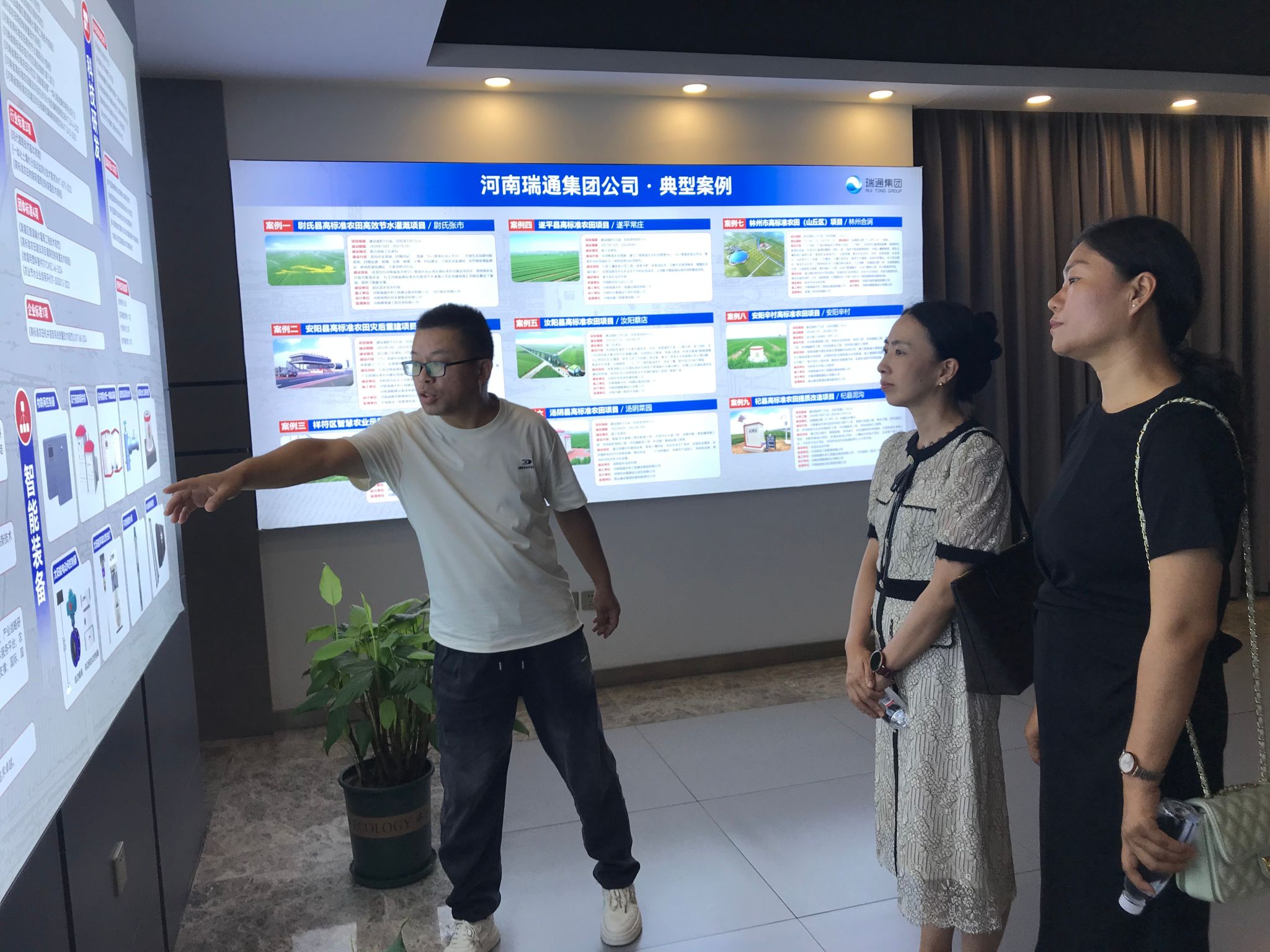 在河南瑞通集团热情接待与引领下,公司一行人首先参观了公司产品展示大厅,通过丰富的图文资料、实物展示以及细致的讲解,全面了解了公司的发展历程、产品研发沿革和探索创新思路。随后,在公司农业数据中心,通过先进的设备、实时跳动的数据,了解了瑞通集团在智慧农业大数据平台建设运营方面的卓越成果,党建引领企业发展的实践经验,以及其先后获得国家高新技术企业、河南省专精特新中小企业等多项重量级企业称号的发展成就。