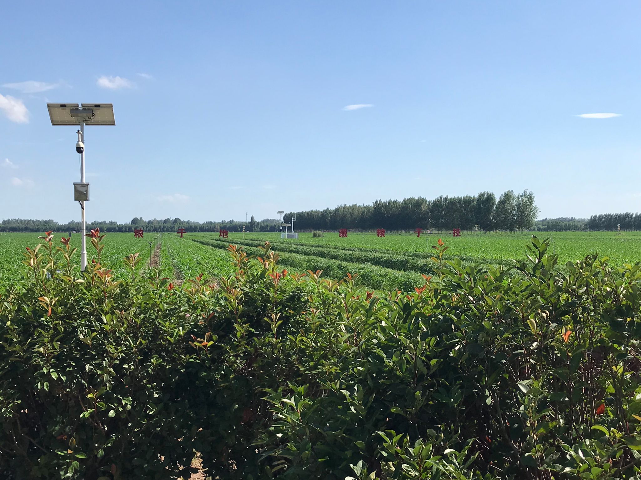 参观完企业后,公司一行人来到由瑞通集团参与建设的高标准项目示范区。该示范区以“智慧、绿色、高效”为建设理念,整合了物联网、云计算、人工智能等前沿技术。走进示范区,智能喷灌系统正根据土壤湿度传感器反馈的数据,精准调节喷水量;智能监测设备,在田间持续收集着光照、温度、风速等环境数据,并实时传输至农业数据中心。据示范区负责人介绍,通过高标准农田建设和智慧农业技术的应用,提升了农作物产量、水资源利用率,减少了农药和化肥的使用量,解放了劳动力,提高了生产力,实现了经济效益与生态效益的双丰收。公司一行三人深入田间地头,与技术人员交流,直观感受到了现代农业科技的魅力。