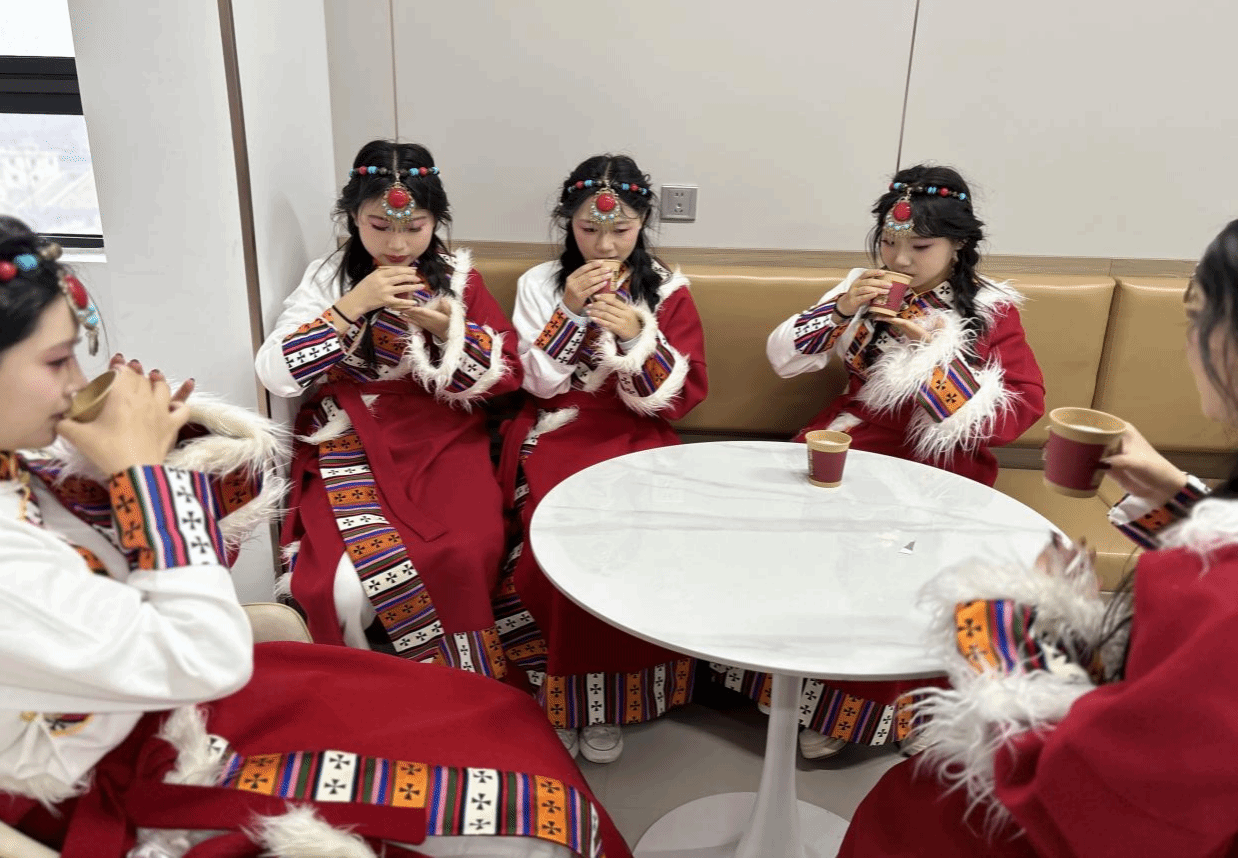 一杯醇香浓郁的酥油茶是藏族同胞真诚与厚谊的饮品,是欢庆时刻最珍贵的献礼。在展演结束后,yl23411永利组织开展了酥油茶品鉴会,参演师生在热气腾腾的茶香里回味精彩、品鉴醇香,在畅聊表演心得,碰撞思想火花的同时,增进对民族文化交融的理解与认同。