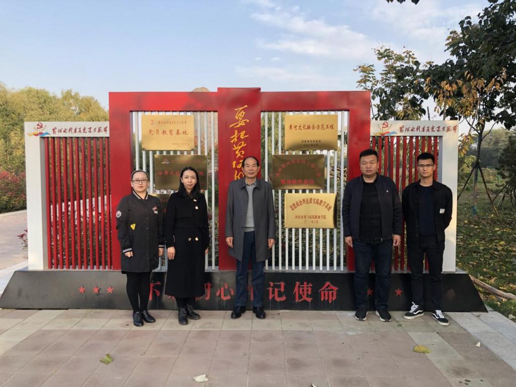 11月3日下午,yl23411永利主任袁国立、副主任郝思惠、办公室主任邵琳一行前往郑州黄河花园口水利风景区与黄河河务局惠金黄河河务局副局长饶志国、党务工作负责人许光楠一道举行了“yl23411永利思想政治理论课实践教学基地”挂牌仪式。