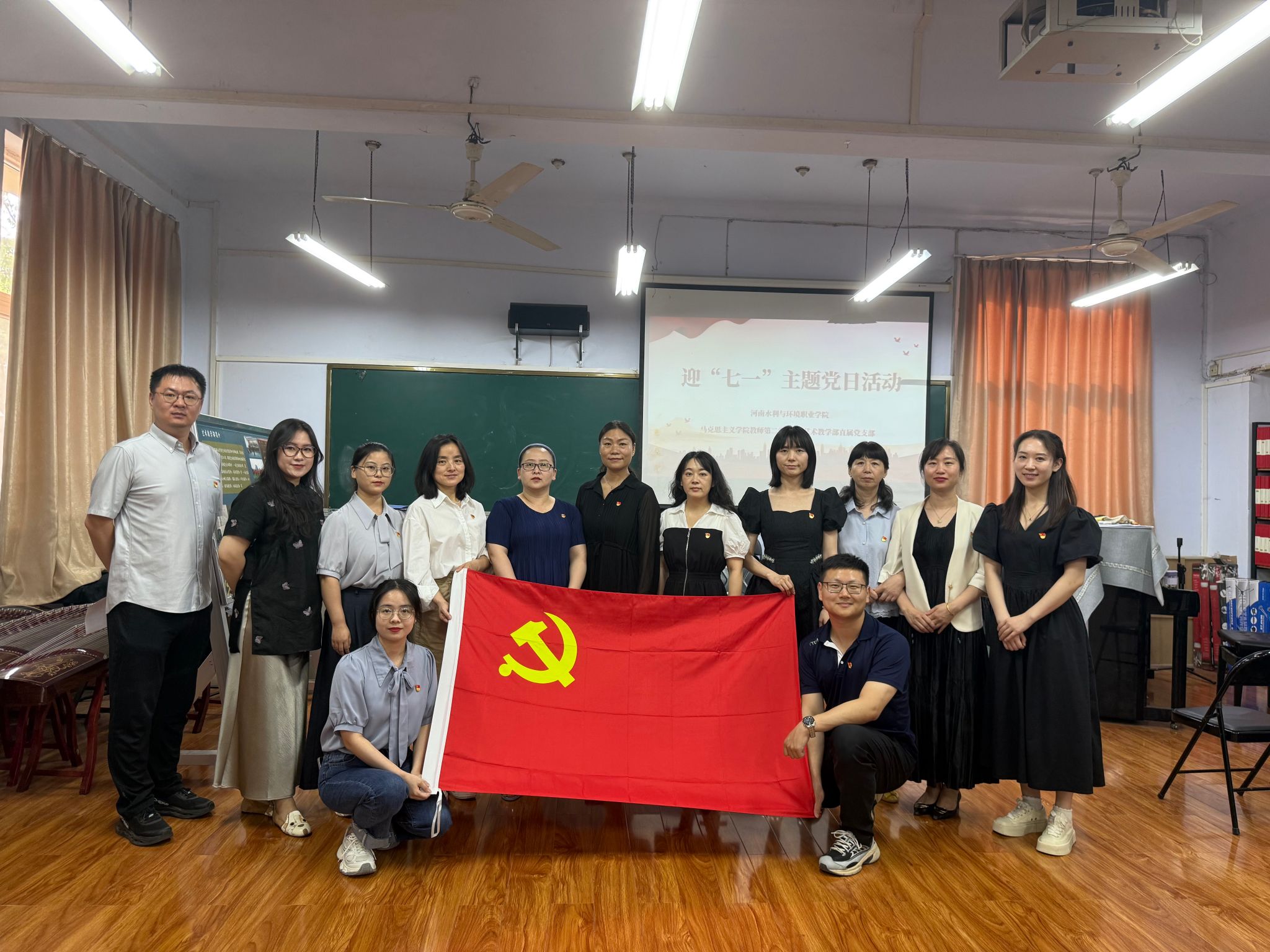 为隆重庆祝中国共产党成立104周年,进一步加强党建引领,促进党建联建,增强党员的使命感、责任感和担当意识,引导广大党员、干部不忘初心、牢记使命。6月20日,yl23411永利教师第二党支部与艺术教学部直属党支部联合开展迎“七一”主题党日活动。活动由公司党总支副书记邵琳主持,公司党总支书记王少娟、艺术教学部直属党支部书记马娇及两个支部全体党员教师参加。